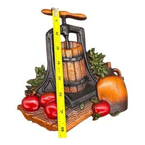 Set of 2 Homco Corn Hopper Apple Cider Press Metal Plaques Wall Sculptures Decor