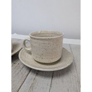Set of 2 Homespun Stonecast Churchill Wild Strawberry Tea Cups & Saucers