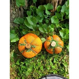 Set of (2) Hypertufa Hand Painted Pumpkins, Handmade Cement Pumpkins