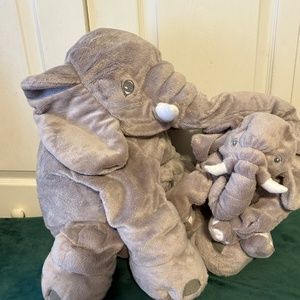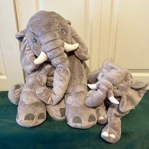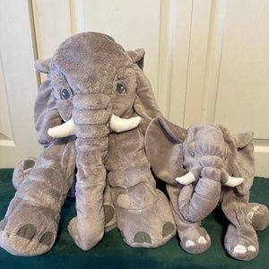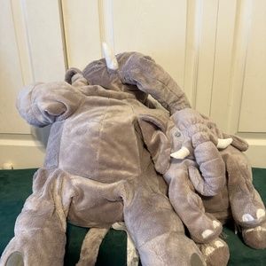 Set of 2, from IKEA, Jattestor a large gray elephant, 24” long by 18”tall and Leddjar a smaller gray elephant 12” long, by 10” tall, Very soft and cozy, machine washable, gently used, both are clean and ready to be loved.