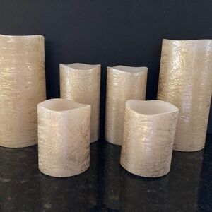 Set of 2 Iced Metallic Battery Operated Flameless Candles & Remote/4 x 8 "/NEW!