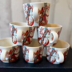 Glossy finish, featuring a colorful pattern that includes foxes, chicken and a rooster. Originating from Finland, the cups are in perfect unused condition, no chips or cracks. The cups do not have an Iittala sticker. These are a RETIRED pattern.