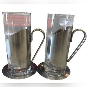 2 Irish coffee glasses with saucers and 2 long-stemmed drinking spoons