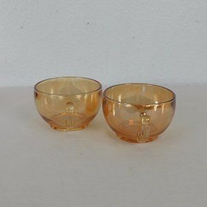 Set of 2 Jeanette Glass Moderne Marigold Iridescent Cup & Saucer Set Punch Cup
