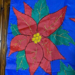 Set of 2 Jetmax Interntl Poinsettia & Reindeer Christmas Nylon Christmas Flags