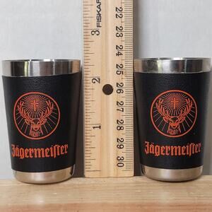 Elevate your home bar or gift a Jägermeister enthusiast with this set of two stainless steel shot glasses! These glasses are perfect for enjoying chilled shots of your favorite liqueur. Their sleek design and durable construction make them a stylish and practical addition to any collection. Cheers to good times and great company! Comes from a smoke free home.