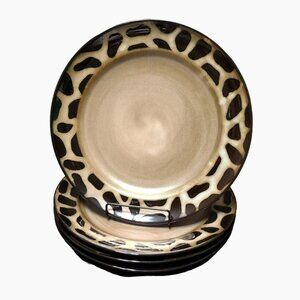 This set of 2 Joseph Abboud Cheetah Dinner Plates feature a striking brown and tan animal print design. The "Cheetah" pattern was made around 2010 and is discontinued and pieces are quite hard to find. Adds a stylish touch to any table setting. Made of a high quality, heavy, durable ceramic stoneware - a single plate weighs almost 2 pounds. I have 7 of these dinner plates altogether. This listing is for a set of 2 plates. See my other listings for a single plate, or message me for details. • Diameter: 11 inches • Dishwasher & microwave safe • Brown & tan cheetah pattern • Designed by Joseph Abboud