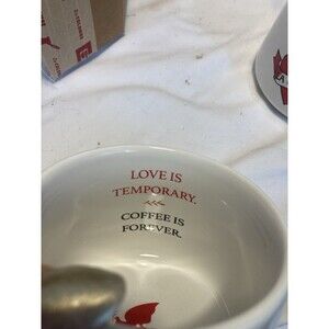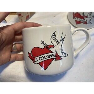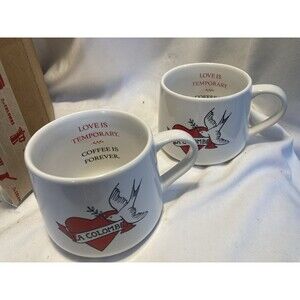 Set of 2 LA COLOMBE MUG New In Box Coffee Is Forever Love Is Temporary Tea Cafe