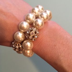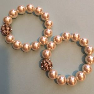 Pretty chunky faux pearl stretchy bracelets w/ sparkly accent bead. Worn a couple of times. May have some minor scratches, but nothing obvious. Bundle with another listing for only $1!