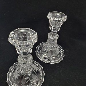 Set of 2 Lead Crystal Vintage Glass Candle Stick Holders 5” Clear Crystal
