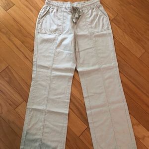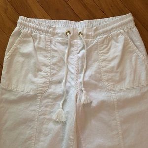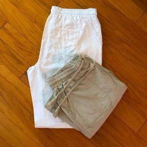 Two Excellent Condition linen blend trouser pants. Khaki and White. The styling is the same in each color. Each measures 34w x 31.5 inseam. Excellent condition.
