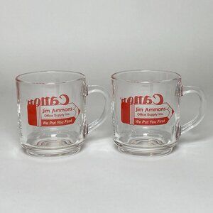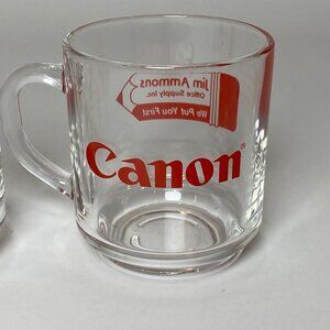 Set of 2 Luminarc Clear Glass Coffee Mugs Canon Vintage Advertising
