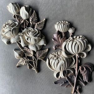 One (1) Gold and White Roses and One (1) Gold and White Chrysanthemums (Syroco #4460) - selling as a set!