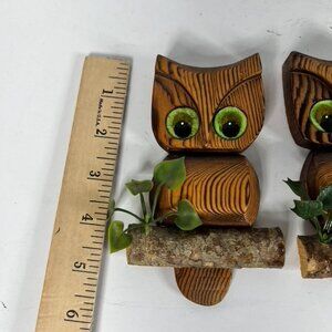 Set of 2 MCM Wooden Owls