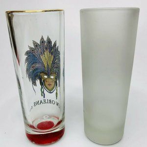 Set of 2 Mardi Gras Masquerade Masks Shot Glasses 2 fl oz Capacity Frosted Clear