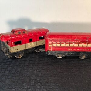 Set of 2 Marx Tin litho O gauge Pre war Train cars passenger and caboose