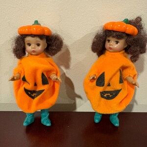 5 inch PumpkinCostume Vintage Dolls. Eyes close when they lay down. Hair is a bit messy but otherwise in very good condition. Used condition sold as is. From 2003.