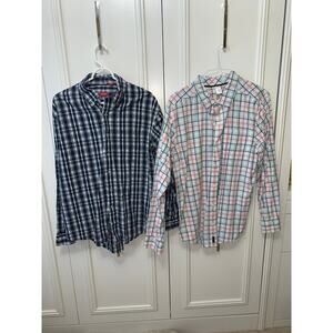 Set of 2 Men's Large Plaid Long Sleeve Button-Up Shirt Multicolor