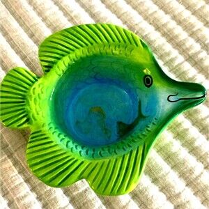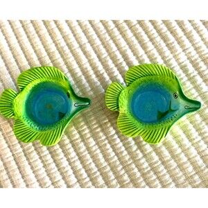 Set of 2 Mesa International Fish Decorative Dish Bowl Green Blue