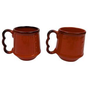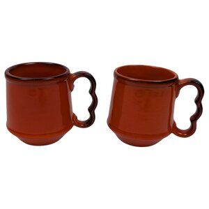 Each mug is crafted with care and features uniquely scalloped handles, adding both style and comfort to your morning coffee or tea routine. These mugs are perfect for collectors, retro enthusiasts, or anyone who appreciates timeless tableware with a rustic flair.