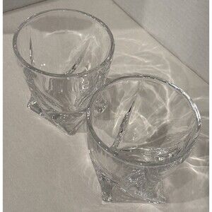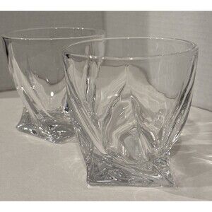 Set of 2 Mikasa Crystal "Motion" Twist Base Double Old Fashioned Glasses 3 3/4"