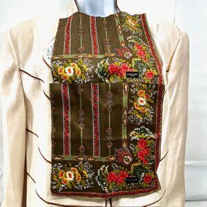 #54 Set of 2 New Classic Lanvin Paris MiniScarf/Handkerchief cotton silk 19"x19" , color brown green yellow white red pink floral logo designs, made in Japan