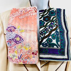 Set of 2 New MiniScarf Cotton/Silk 21"-22" LANVIN Paris & Blooming Peach pink(56