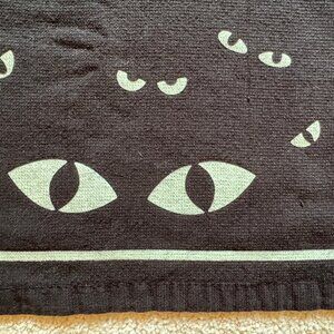 - Eye-catching green eyes on a black towel add a spooky yet stylish touch to your Halloween kitchen decor.