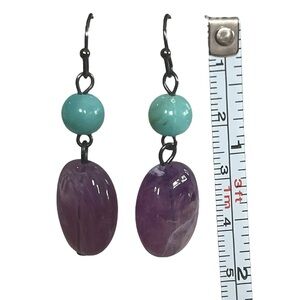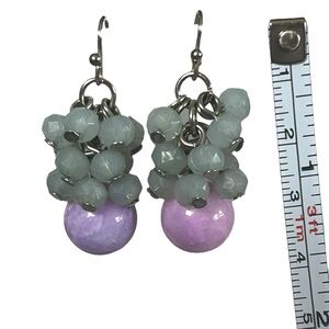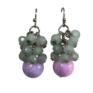 Set of 2 Pairs Purple Beaded Pierced Dangle Earrings Fishhook