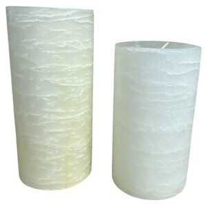 Bring cozy coastal vibes to your home with this set of 2 PartyLite GloLite pillar candles in the relaxing scent Sea Salt & Driftwood 🌊🕯️