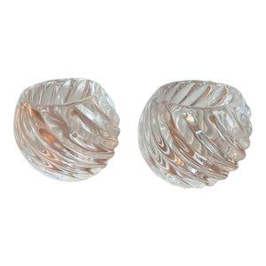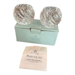 Set of 2 Partylite P0463 Illusions Swirl Glass Votive Candle Holders Clear
