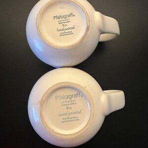 Please note that while these 2 mugs are both Pfaltzgraff in the Rio pattern, there are a few slight differences, including, the size and color of font on the underside, one mug is slightly taller, and the interior blue on one mug is slighter darker.