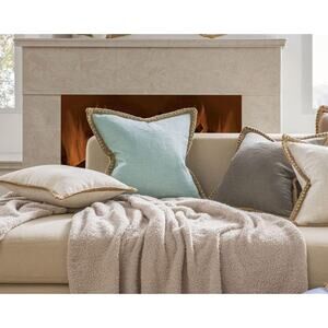 Material: Polyester and Burlap Trim, invisible zipper closure
