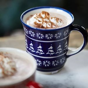 > Hand-crafted by the Boleslawiec pottery house in Poland, this mug is painted in the tradition of a classic Nordic style.
