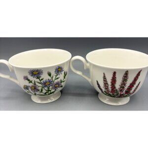 These Portmeirion Botanic Garden cups feature delicate floral designs with Aster and Heather motifs. Their elegant charm enhances your tea time experience.