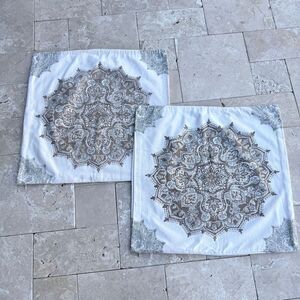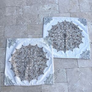 Set of 2 Pottery Barn Erica Medallion Pillow Covers 24”x24” Cream Taupe Boho Zen