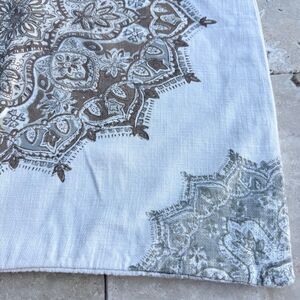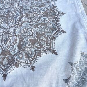 Beautiful bohemian zen medallion design print. Neutral colors. Base color is a light ivory/cream color with a brown and gray medallion print. Large square 24” x 24”. Zipper closure at side seam. Made from 100% cotton, machine washable.