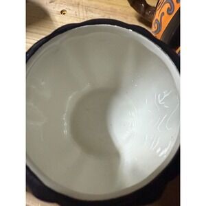 Celebrate the cozy season with this charming set of 2 pumpkin-shaped ceramic mugs, perfect for Halloween, fall décor, or everyday autumn vibes. Featuring a black and orange striped design with intricate scroll detailing and sturdy brown handles, these mugs add a festive touch to your coffee, tea, or hot cocoa moments. Crafted from durable ceramic with a glossy finish, they're ideal for seasonal entertaining or gifting. Both mugs are in excellent condition with no chips, cracks, or flaws.