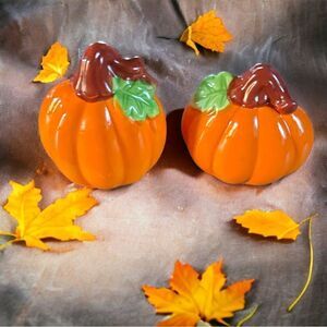 Set of 2 Pumpkin l Ceramic Salt & Pepper Shakers l Fall l Home, Kitchen Accessories EUC