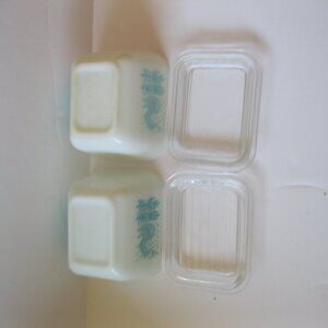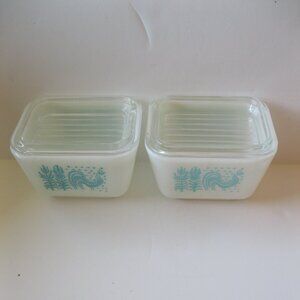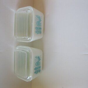 Set of 2 Pyrex 501 B Refrigerator Dishes with Lids - Turquoise Butterprint