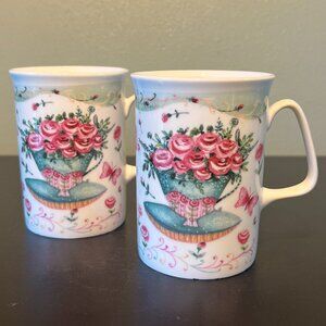 Set of 2 ROSE of ENGLAND Fine Bone China Floral Cups Mugs ~ Made in the United Kingdom
