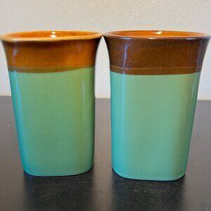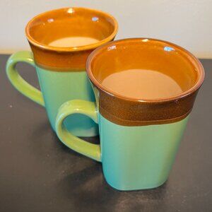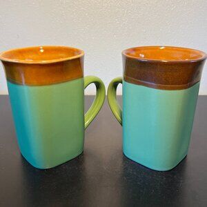 Set of 2 ROYAL NORFOLK Stoneware Mugs ~ Greenbrier International ~ Glossy Green and Brown Glaze