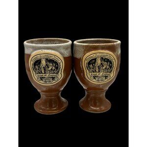 Enhance your dining experience with this set of two Renaissance Festival 2007 Feast of Fantasy wine goblets. Perfect for collectors or themed events, these goblets are 5” tall and 3” in diameter, offering a touch of medieval charm to any occasion.