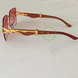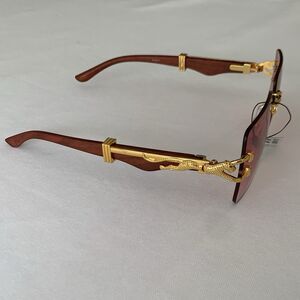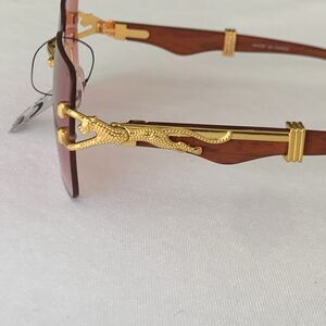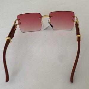 1 Pair Red Rimless Leopard Wood Arm Sunglasses