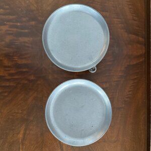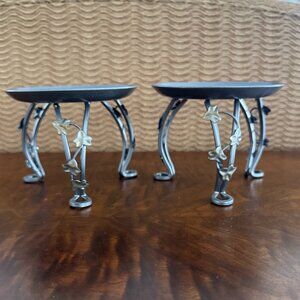 Set of 2 Round Metal 4" Tall Footed Silver Pillar Candle Holder w/ Leaf Accent