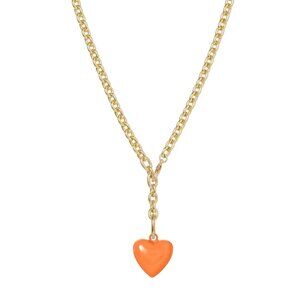 Gold tone brass chain necklace & removable enamel mini puffy heart pendant