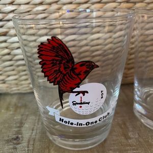 Set of 2 SPALDING "Hole In One Club” Cardinal Old Fashioned Cocktail Glasses. Measure Approximately 4.5"h x 3.5" D. Any questions please ask. Thanks for looking.