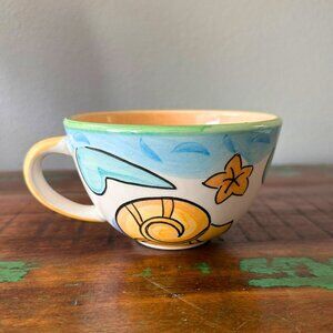 Add a sunny, coastal vibe to your morning with this set of two Salute’ Ceramics cups and saucers. Featuring hand-painted seashells, florals, and ocean waves, these are perfect for your beach house, cottage kitchen, or a thoughtful gift for a coffee lover. Dishwasher & microwave safe No chips or cracks Glaze note: Areas where paint didn’t take on the rim are part of the handmade finish, not chipped or damaged. Due to lighting, colors may vary from photo to photo. The item pictured is the exact item you will receive. From a smoke-free environment.