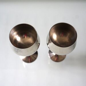Set of 2 Silver Plate Wine Goblets 5 1/2" Tall Portugal Chalice Wine Cup