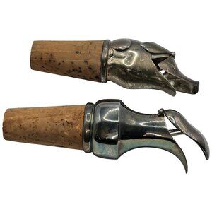 Set of 2 Silver Wine Aerator Stopper Cork Ewer & Pig/Hog Head Design Vintage